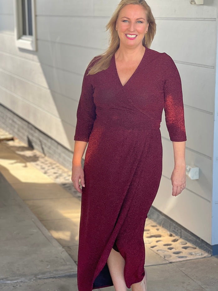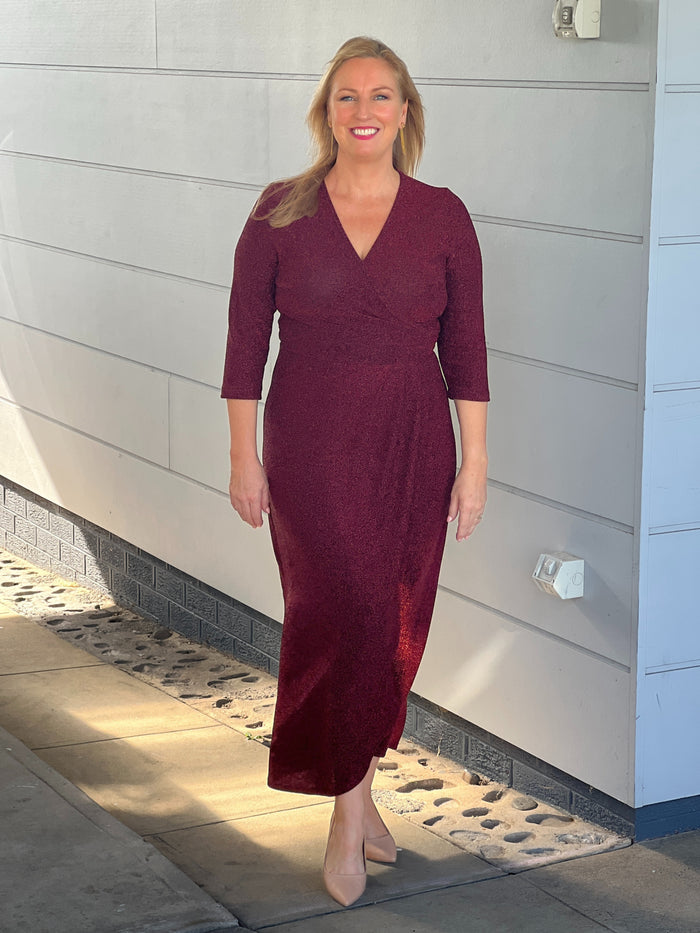 Odessa Burgundy Glitter Wrap Gown