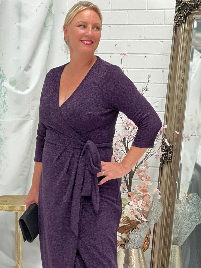Odessa Purple Glitter Wrap Gown