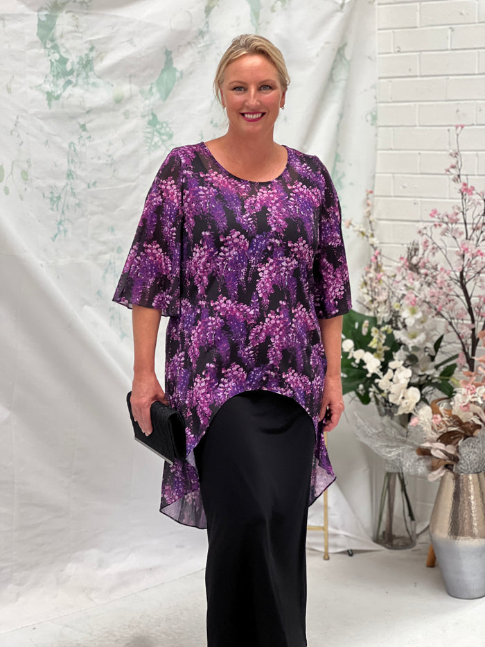 Essen Purple Floral Evening Top