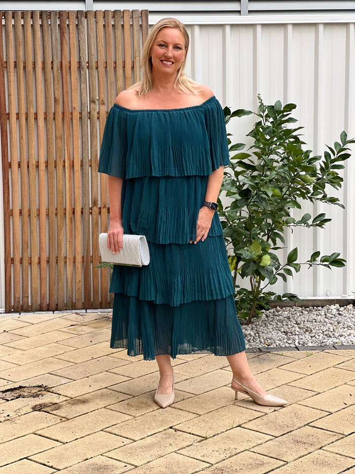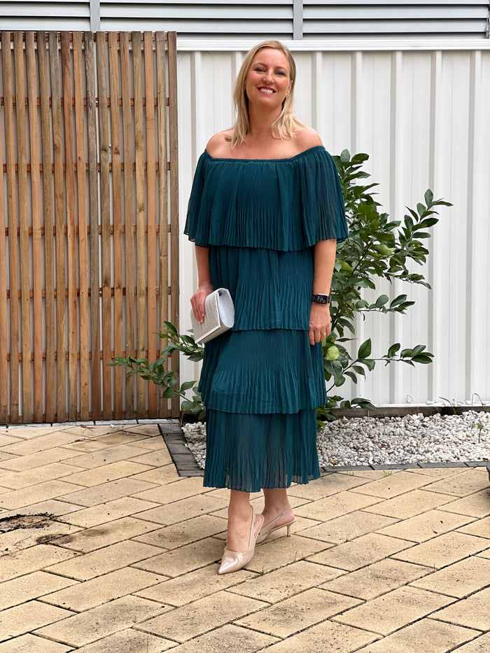 Udella Emerald Pleated Dress