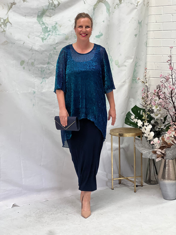 Rhea Azure Blue Shimmer Mesh Top