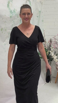 Feel like a celebrity in this breathtaking gown. Shimmer and shine all night long at your next formal occasion. The ruching around the waist is optically effective at hiding the tummy area whilst comfortably shaping your curves. Team with heels and accessories in your favourite colour for a bold red carpet look.