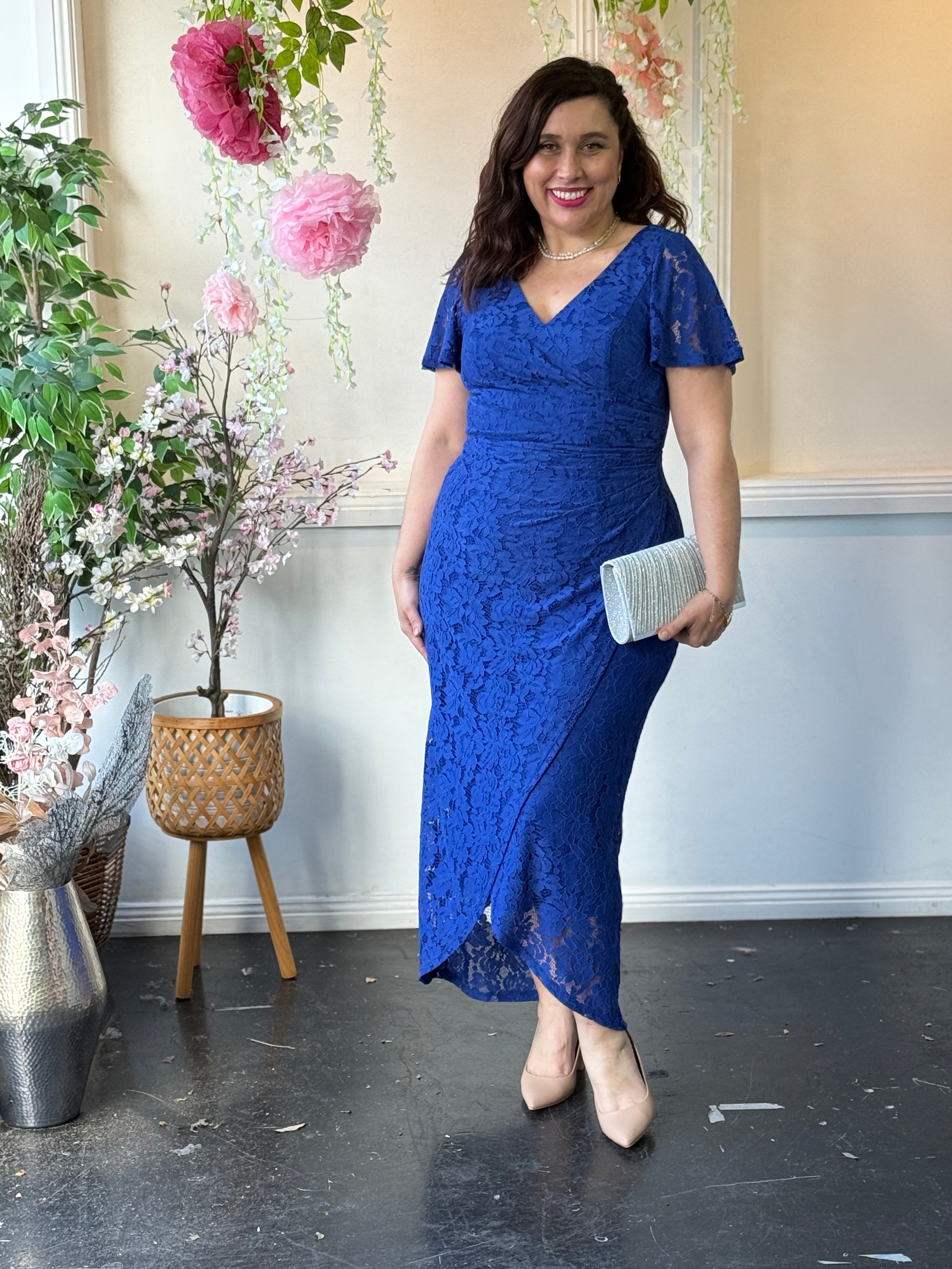 Made in a stretchy sheer mesh and jersey, this dress comfortably hugs your curves with stretch. Pleats across the waist and a wrap around skirt create such a flattering look. Fit is more generous than plain colour Yancy! See below measurements.