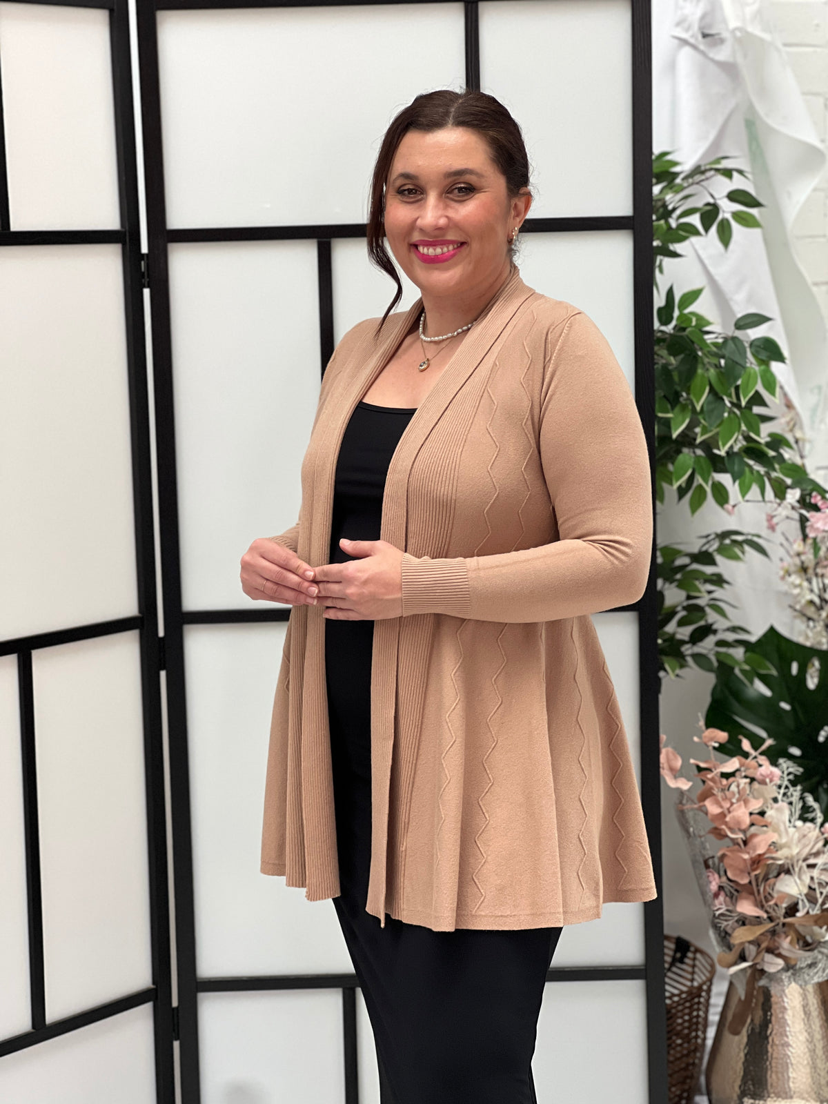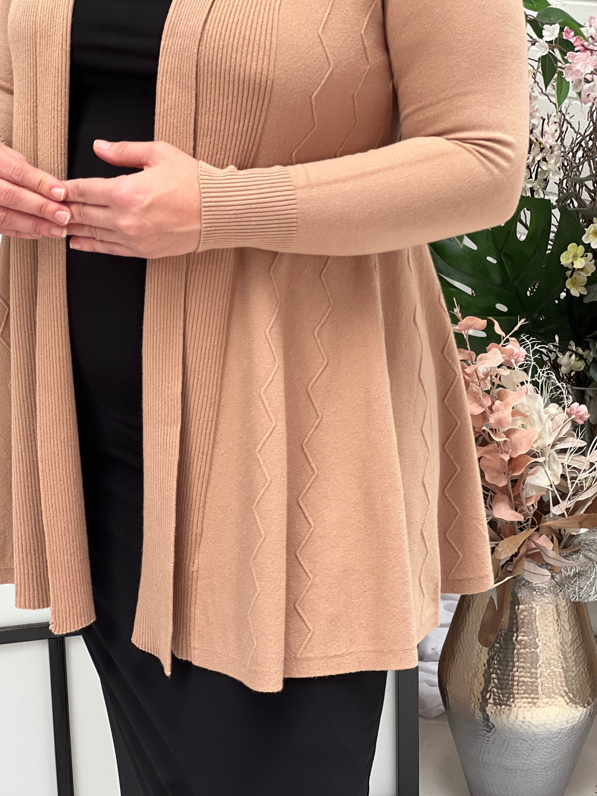 A winter wardrobe must-have! Made in a soft and cosy knit, this edge to edge cardigan is designed to skim your waist and flatter your figure. Featuring a rib collar and subtle vertical zigzag details, this cardigan is the perfect additional layer for your everyday outfit!