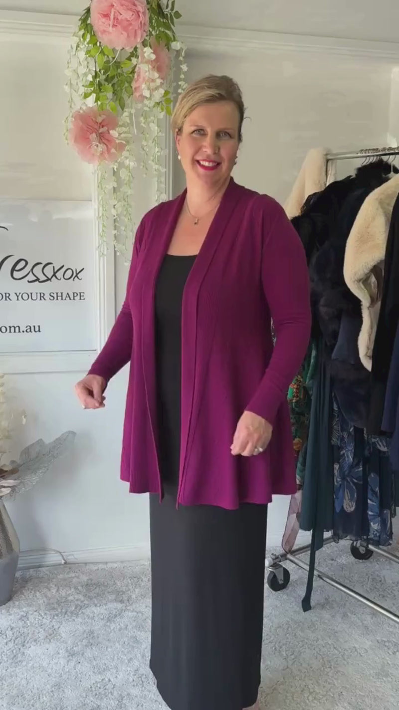 *Swipe to see video. A wardrobe must-have! Made in a soft and cosy knit, this edge to edge cardigan is designed to skim your waist and flatter your figure. Wear it over your day outfit or our Voss dress for a smart dinner outfit.