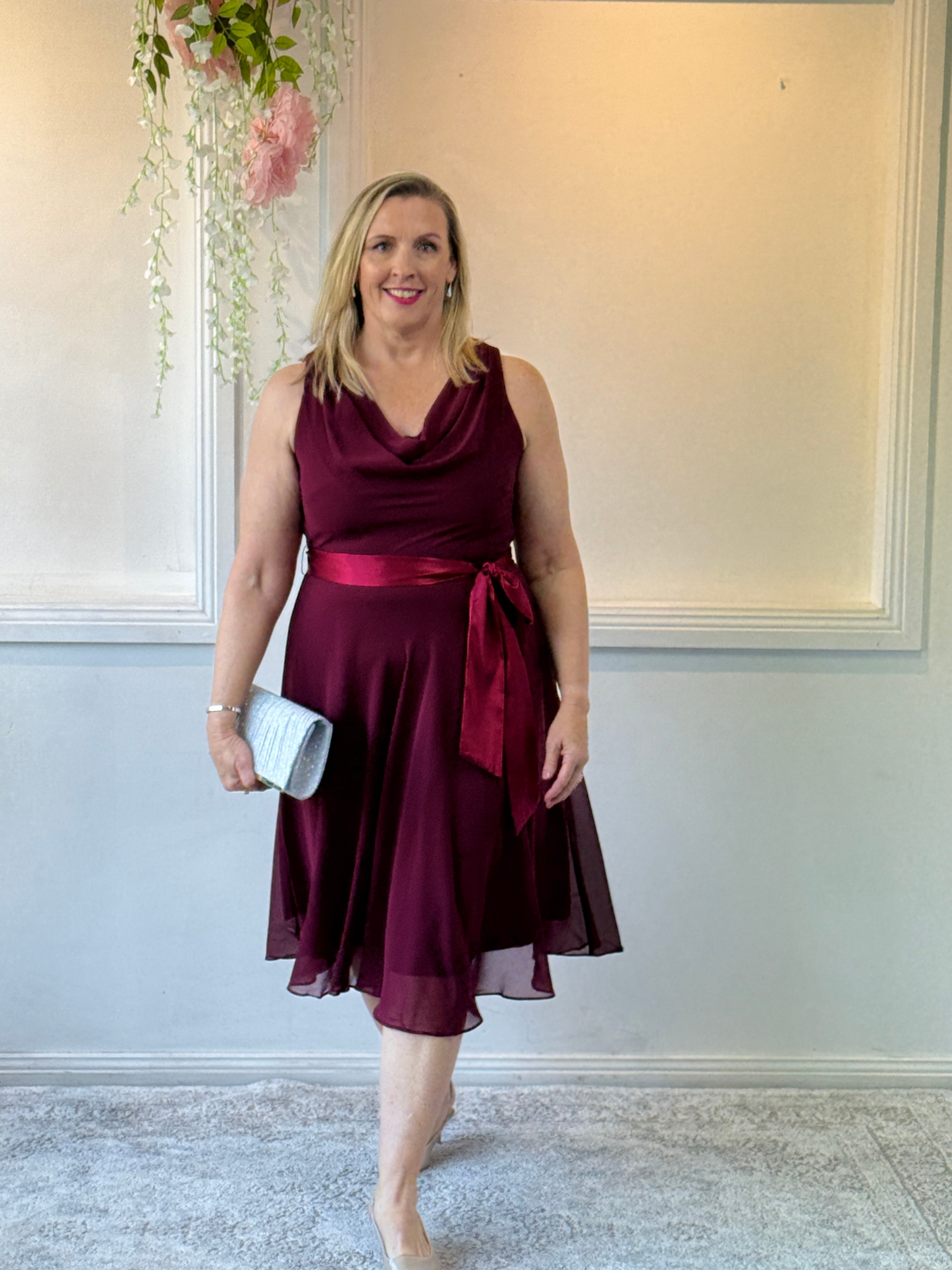This effortlessly chic dress features a draped cowl neckline and an optional waist tie that flatters your figure. Designed with an A-line silhouette, it flows beautifully for a flattering and comfortable fit. Perfect for daytime outings or dressed-up occasions, this versatile piece combines elegance with ease.